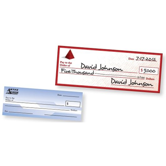 Oversized promotional checks are perfect for fundraising events, contest, and giveaways. You can get them printed with your company’s information and since this one is erasable, you can write on it with dry-erase markers and use it again and again!